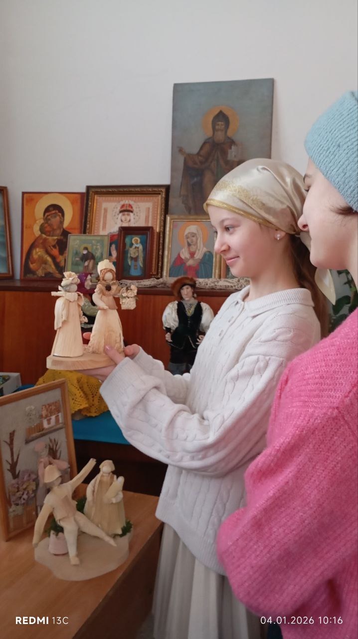 4 января 2026 года, сразу после поздней Литургии проходила выставка кукол прихожанки храма Рождества Христова в Черневе Ольги Сергеевны Зорик.